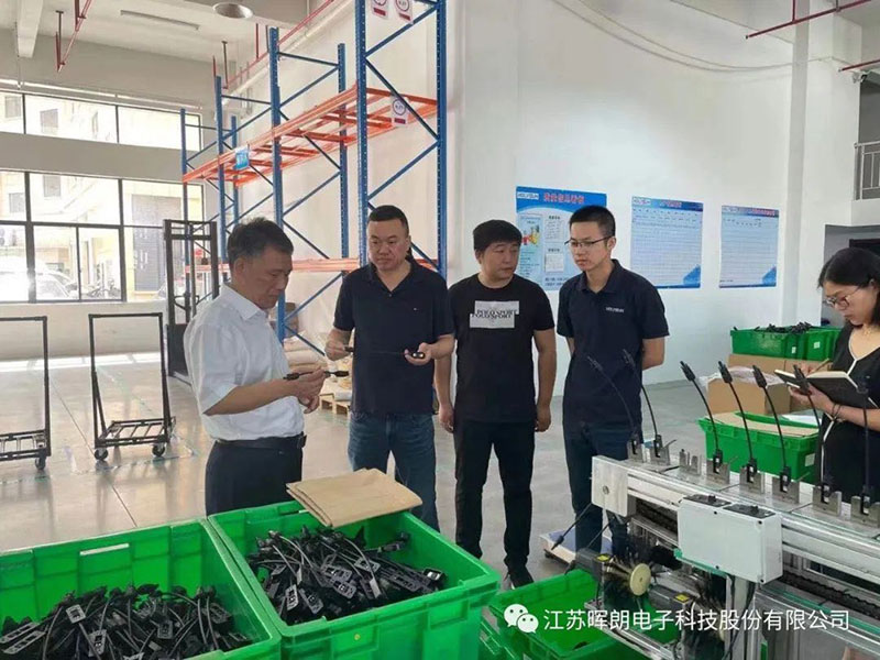 2021年6月8号,义乌高新区政府领导虞书记,朱主任,盛局长及黄秘书一行赴XK.COM星空体育(中国)科技公司(义乌)电子科技有限公司生产现场考察并指导工作。虞书记详细询问了义乌工厂的运行情况,充分肯定了项目的阶段成果并鼓励XK.COM星空体育(中国)科技公司科技进一步加大在义乌工厂的自动化设备投资,扩大配套产能。